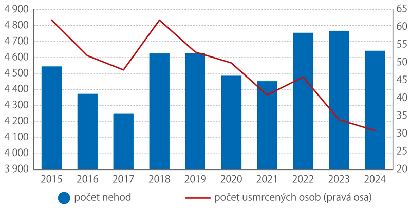 Počty dopravních nehod zaviněných pod vlivem alkoholu se v posledních deseti letech pohybují okolo 4 500 a počet při nich usmrcených osob se pohybuje mezi 30 a 60. Od roku 2018 počty usmrcených při dopravních nehodách zaviněných alkoholem klesají. V roce 2024 bylo hlášeno 4 642 nehod zaviněných pod vlivem alkoholu (tj. 5 % z celkového počtu nehod) a zemřelo při nich 33 osob (tj. 7,5 % usmrcených při všech dopravních nehodách).