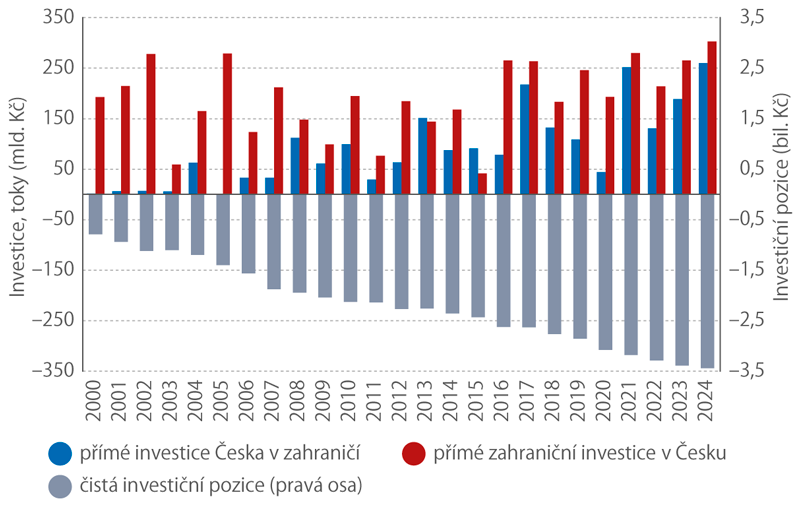 Přímé zahraniční investice v Česku, přímé zahraniční investice Česka v zahraničí a čistá pozice vůči zahraničí