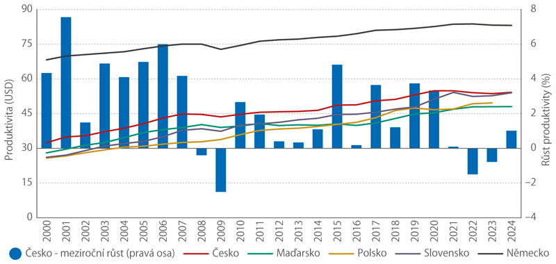Nárůst produktivity mezi lety 2019 a 2023 tak byl v Česku jeden z nejnižších mezi vyspělými zeměmi. Pomalý růst produktivity je v současnosti problémem řady evropských zemí se silným zastoupením průmyslu, včetně velkých ekonomik EU – Německa, Španělska, Francie i Itálie. Inovace v průmyslu a nalezení nových zdrojů růstu produktivity je tak velkým úkolem, který tlačí nejen na Česko.