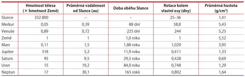 Sluneční soustavu tvoří centrální hvězda, tedy Slunce, s osmi obíhajícími planetami. Země je podle vzdálenosti od Slunce třetí nejbližší a podle hmotnosti čtvrtá nejlehčí. Nejhmotnější planetou v naší Sluneční soustavě je Jupiter, který svou hmotností více než 300krát přesahuje Zemi. Naproti tomu nejlehčích Merkurů by bylo třeba pro vyvážení Země asi 20.