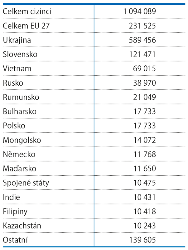 Pětina cizinců jsou občané Evropské unie.