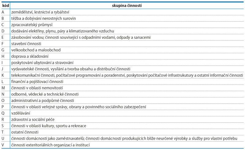 Český statistický úřad ve svých šetřeních sbírá data od firem, které se zabývají různými činnostmi. Aby ve zveřejňovaných statistikách rozlišil, k jakému odvětví se dané údaje vztahují, musí mít pro jednotlivé činnosti stanovené kódy. Tyto kódy tvoří klasifikaci ekonomických činností, která je kvůli mezinárodní srovnatelnosti jednotná pro celou Evropskou unii a řadu dalších států. Setkat se s ní můžete pod zkratkou NACE. Kompletní klasifikaci najdete na webu ČSÚ, pouze pro ilustraci uvádíme, že například pěstování vinných hroznů má kód A 01.21, těžba černého uhlí B 05.10 a finanční leasing L 64.91.