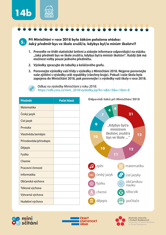 Metodické listy jsme připravili ve spolupráci s Pedagogickou fakultou Jihočeské univerzity v Českých Budějovicích. Odbornými partnery Minisčítání jsou Česká demografická společnost, Fakulta informatiky a statistiky VŠE v Praze, Matematicko-fyzikální fakulta a Přírodovědecká fakulta UK.