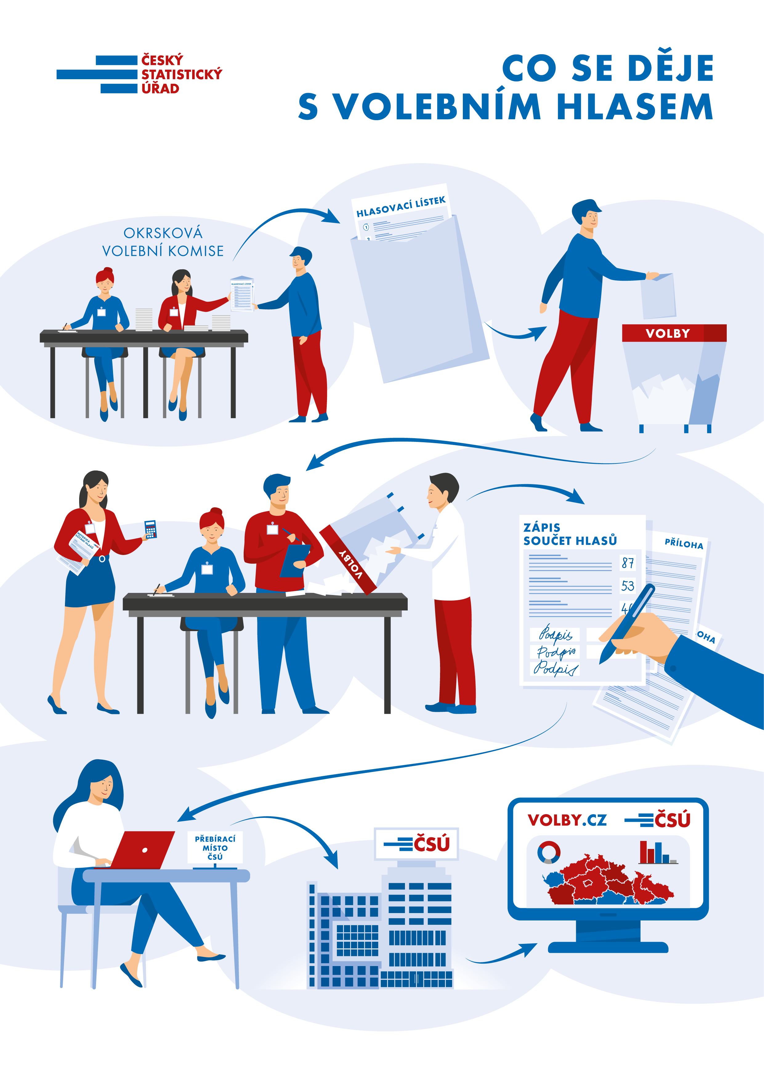 Celkové výsledky voleb pak zpracovává centrální pracoviště ČSÚ. „Data převzatá z našich přebíracích míst téměř bezprostředně zveřejňujeme na prezentačním webu volby.cz, který je však zcela oddělen od samotného zpracování a plní úlohu pomyslné on-line nástěnky,“ říká Eva Krumpová, 1. místopředsedkyně Českého statistického úřadu. Zde jsou výsledky hlasování přístupné od nejnižší úrovně okrsků až po údaje za celou republiku, a to i ve formátu otevřených dat. Komise si tak mohou zkontrolovat, že výsledky byly zveřejněny v souladu